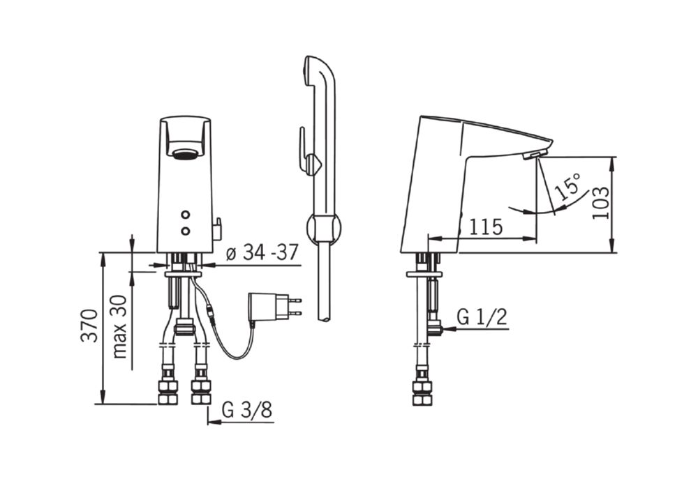 Бесконтактный смеситель для умывальника с рукояткой регулировки температуры и ручным душем Oras Bidetta. Смеситель оснащен грязевыми фильтрами, обратными клапанами и датчиком с функцией автофокуса, благодаря которому не требуется дополнительная настройка параметров. Ограничитель расхода воды (6 л/мин) позволяет экономить воду. Работает от трансформатора 230/12ВАльтернатива: шинный трансформатор 199275. К одному трансформатору могут быть одновременно подключены до пяти смесителей.