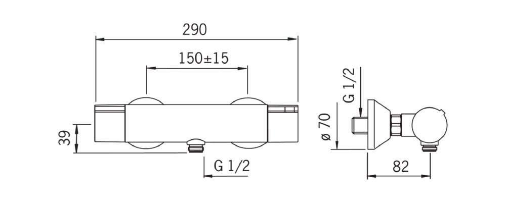 Термостатический смеситель для душа с эксцентриковыми соединителями и розетками