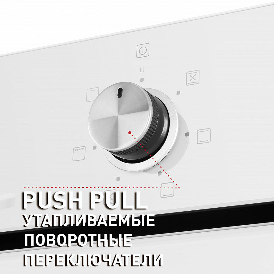 В комплектацию добавлены телескопические направляющие, а управление происходит при помощи утапливаемых ручек PUSH PULL, которые легко убираются внутрь корпуса после использования, что делает уход за лицевой панелью шкафа максимально удобным.