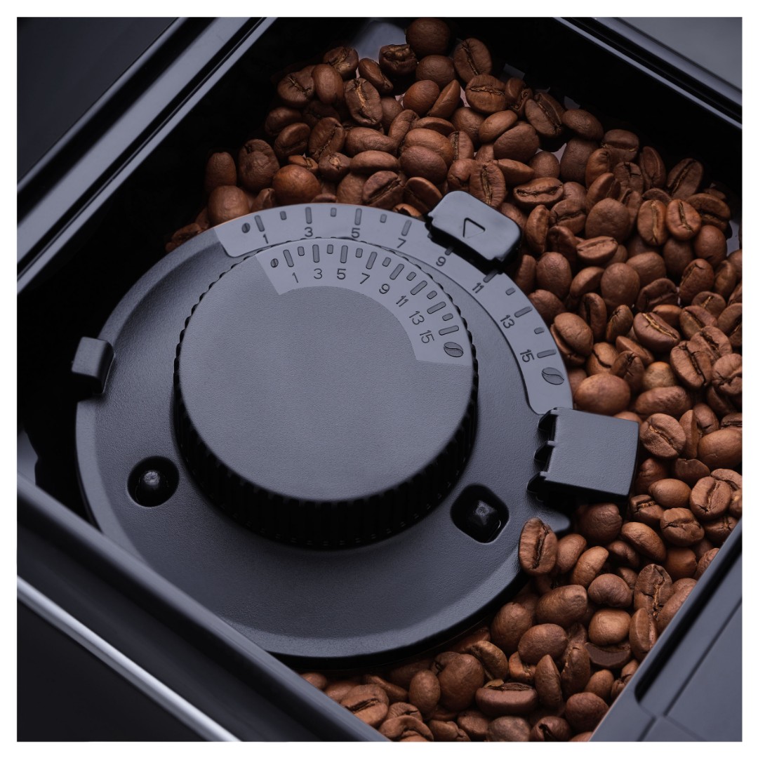 Кофемашина Korting KACM 2002 Andante — это современный прибор с большим количеством настроек, выполненный в строгом черном цвете. Она предназначена для приготовления как зернового, так и молотого кофе и оборудована итальянской помпой с давлением 20 бар, что обеспечивает идеальное извлечение ароматов и вкусов. Модель предлагает восемь автопрограмм с возможностью ручной настройки, что дает пользователю возможность разрабатывать и сохранять индивидуальные рецепты. Сенсорный экран с видеосопровождением облегчает выбор и управление машиной. Кофемашина поддерживает 15 уровней помола, а встроенный капучинатор позволяет готовить великолепные кофейные напитки с молоком одним нажатием сенсорной кнопки. Резервуар для молока объемом 750 мл, входящий в комплект, удобно убирается в холодильник для хранения.