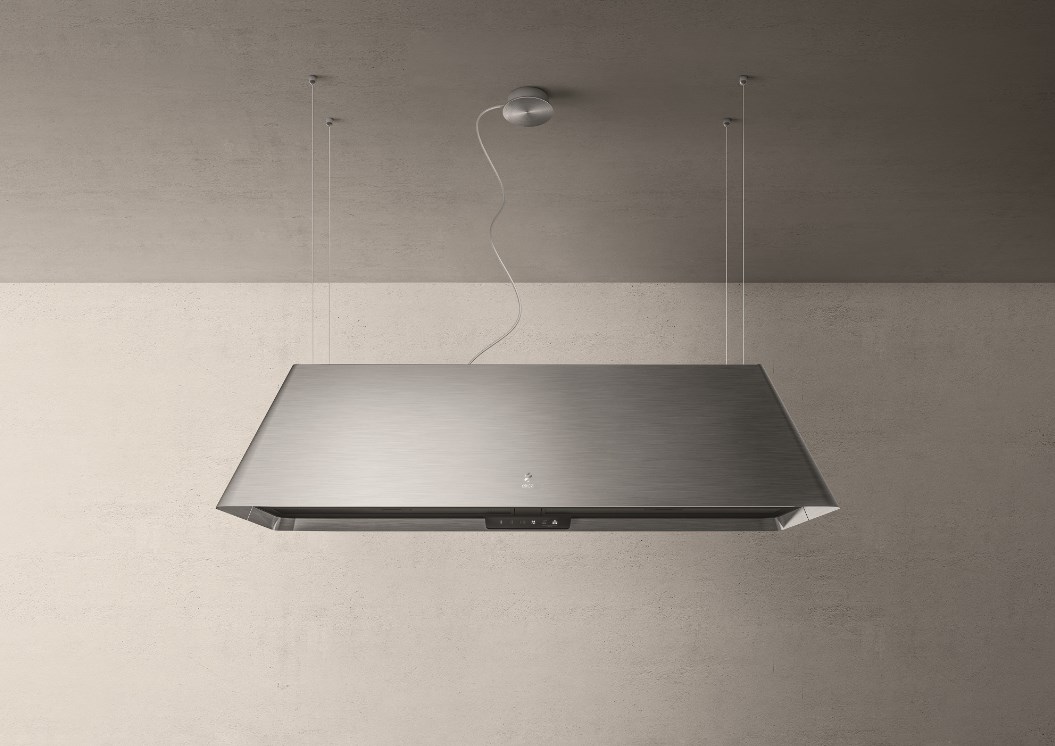 Ikona Maxxi Pure доступна в черном цвете с эффектом soft touch или с отделкой из нержавеющей стали и предлагает широкий выбор способов установки: отвод воздуха или фильтрация, настенное или подвесное крепление, с вытяжной трубой, которую можно расположить с права или слева, или же без нее.