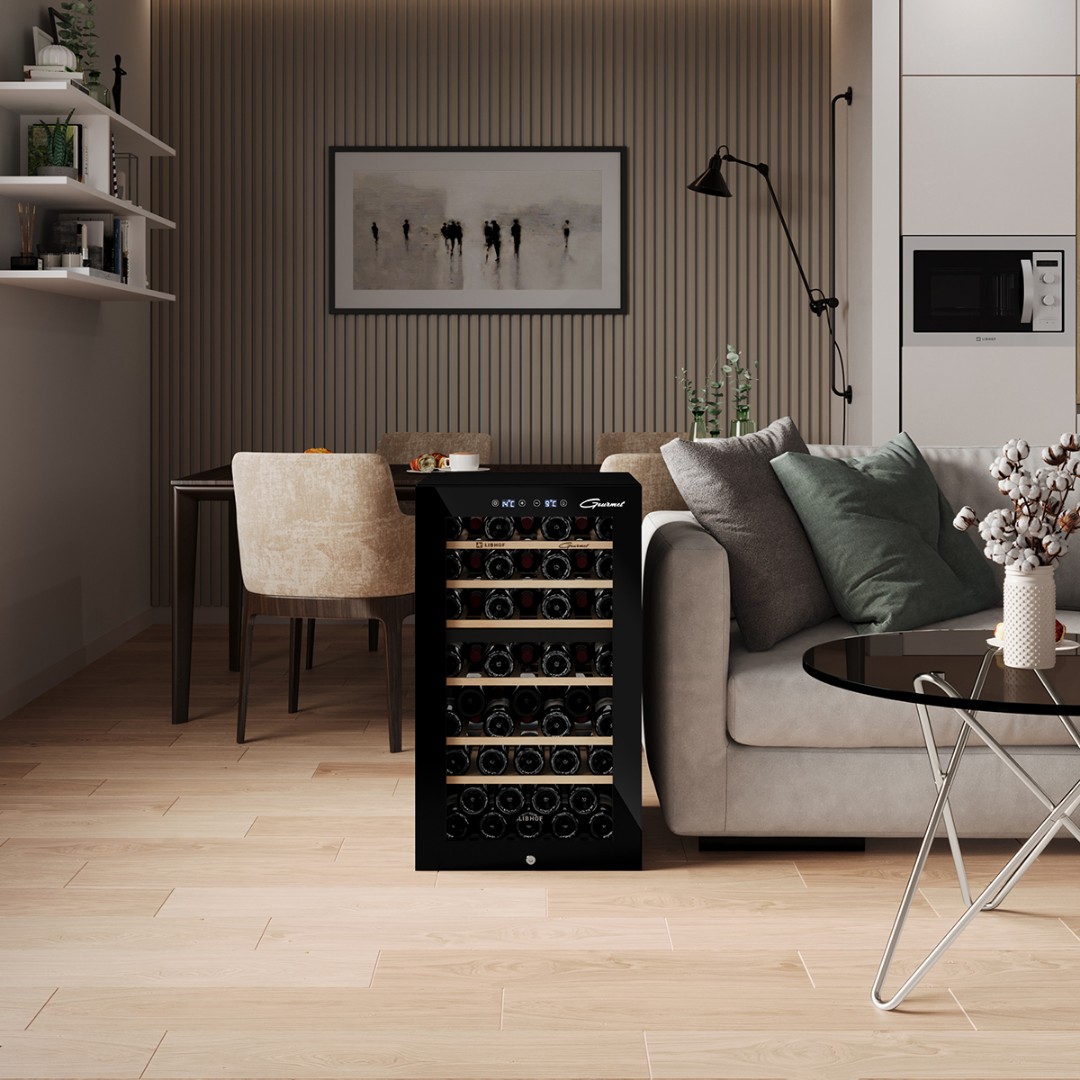 Винные холодильники серии «Gourmet» созданы для гурманов и настоящих ценителей вина. В камере шкафа поддерживается оптимальная температура, влажность и уровень освещенности, которые можно регулировать в зависимости от вида хранимого напитка. Высокие технологии предусматривают встроенную систему антивибрации, что отвечает требованиям хранения вина, и систему вентиляции и фильтрации, исключающую появление неприятного запаха. Система обогрева стекол поддерживает постоянную температуру внутри холодильника, даже если температура снаружи ниже, чем настроенная на панели винного шкафа.