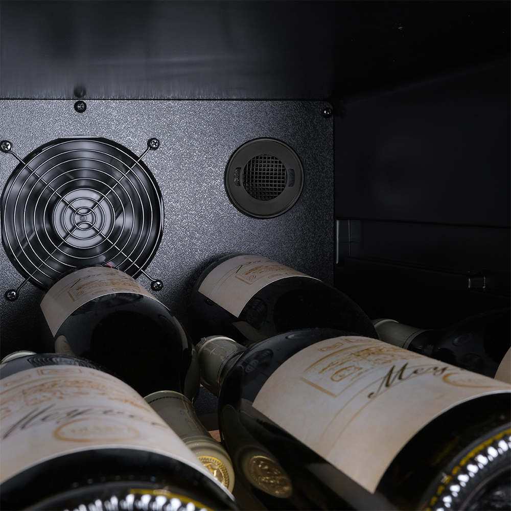 Модель MV98-KBF2 оснащена компрессорной системой охлаждения, которая отличается высокой эффективностью и долговечностью. Компрессор создает холод, путем сжатия хладагента и его последующего расширения, поэтому винный шкаф быстро достигает нужной температуры и стабильно ее поддерживает.