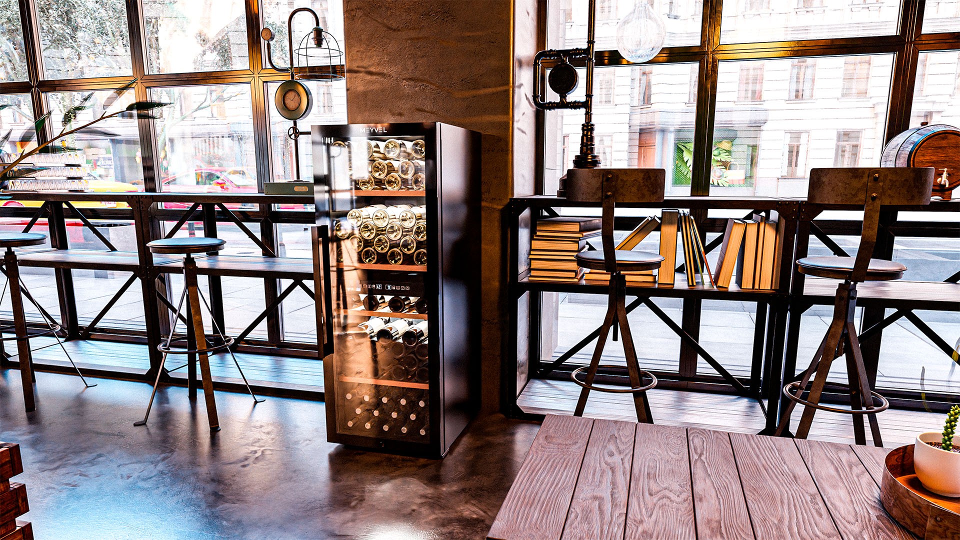 Meyvel MV98-KBF2 — отдельностоящее устройство, поэтому можно разместить его в любом удобном месте ресторана, отеля, бара или домашней винной комнаты без встраивания в мебель. Это удобно не только для создания стиля и атмосферы в интерьере, но и для предоставления легкого доступа к винам.