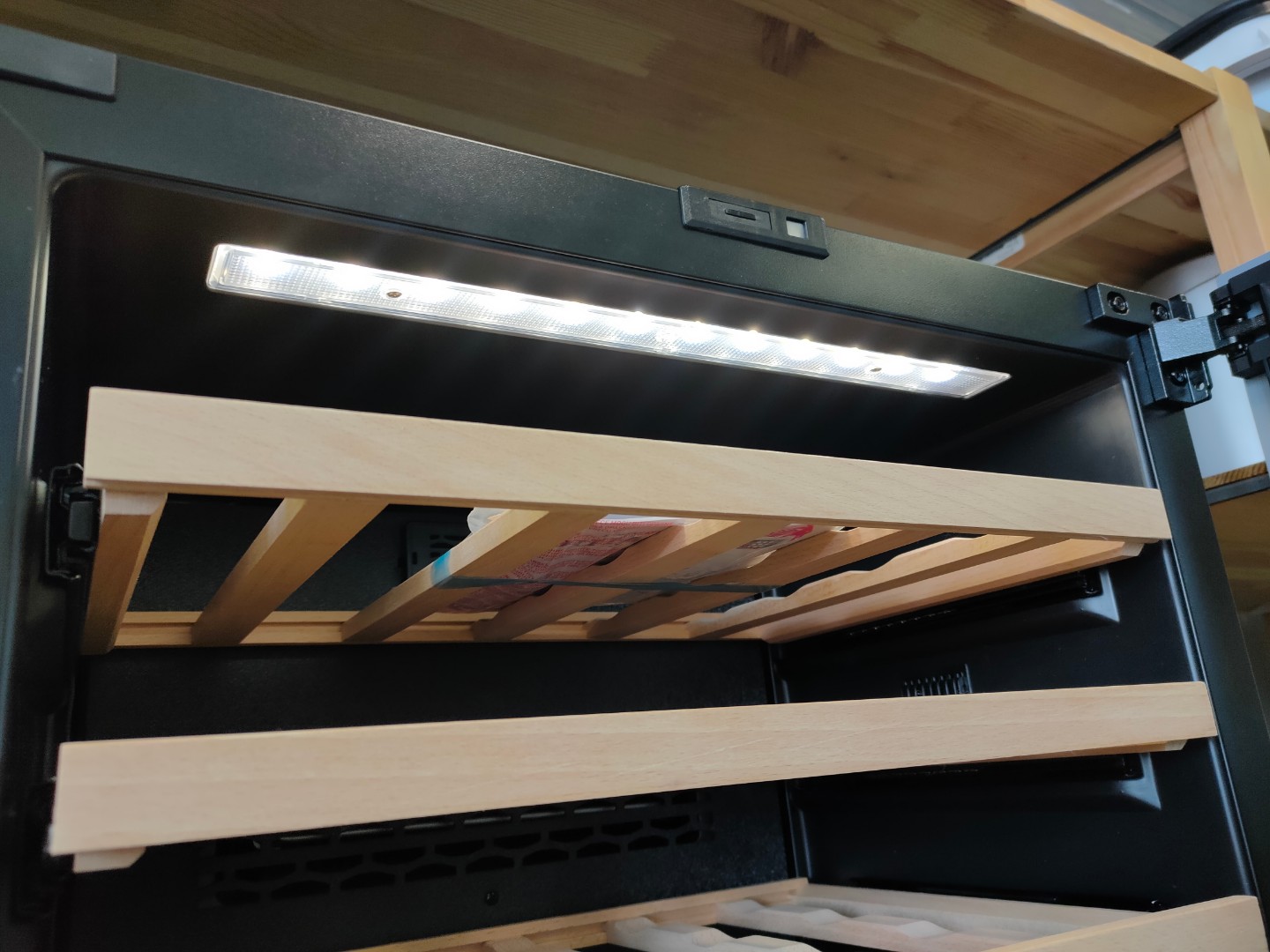 - Даже при закрытой дверце шкафа вы можете видеть каждую бутылку;