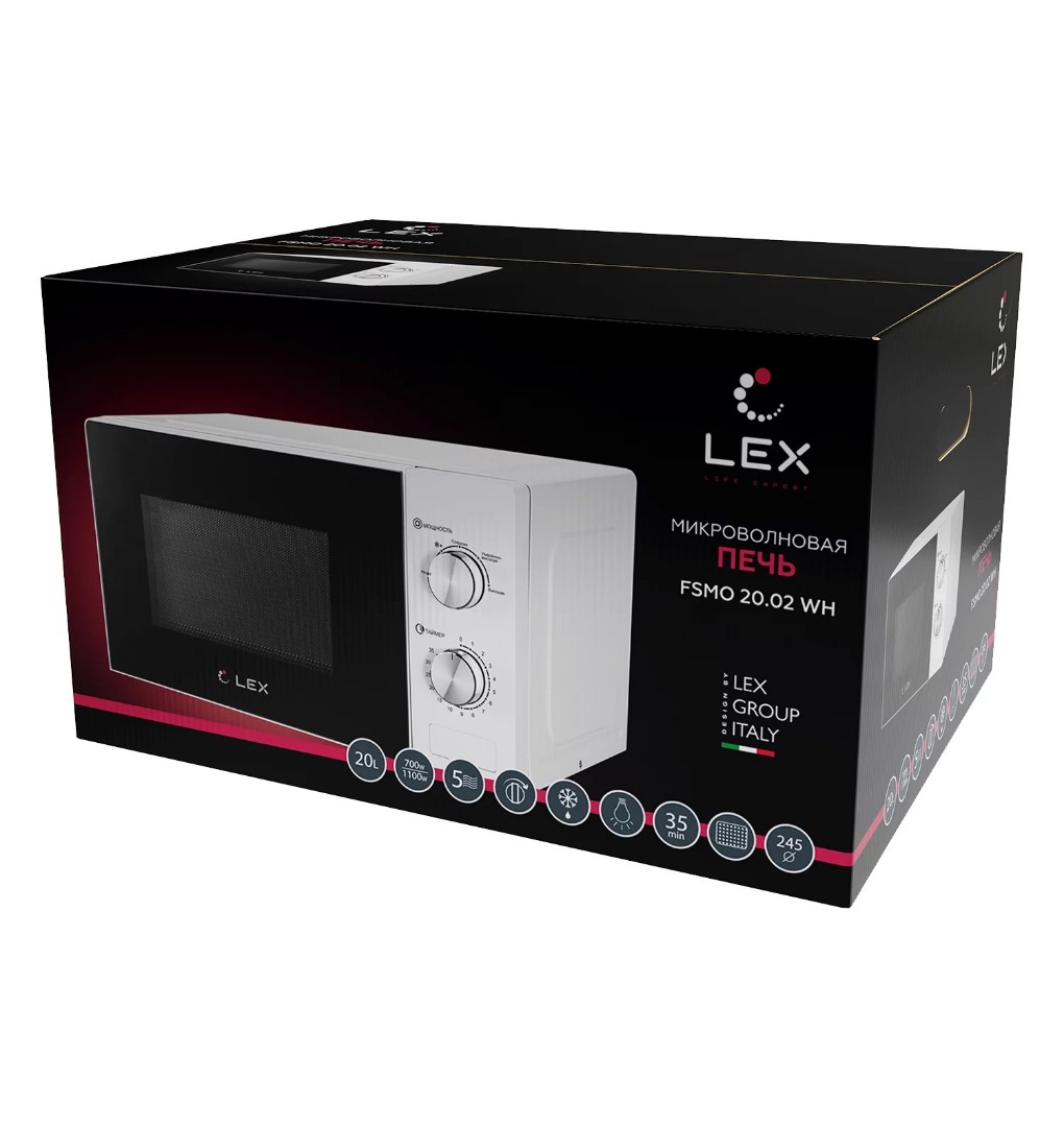 Печь с объемом 20 л имеет потребляемую мощность 1100 Вт и механическое управление. Есть и удобный режим разморозки, и таймер, рассчитанный на 35 минут.